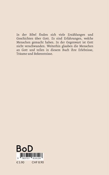 In der Bibel finden sich viele Erzählungen und Geschichten über Gott. Es sind Erfahrungen, welche Menschen gemacht haben. In der Gegenwart ist Gott nicht verschwunden. Weiterhin glauben die Menschen an Gott und teilen in diesem Buch ihre Erlebnisse, Träume und Bekenntnisse.