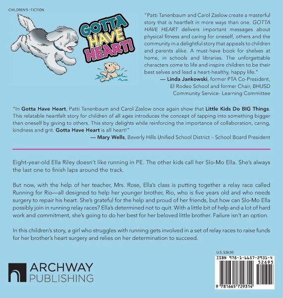 Eight-year-old Ella Riley doesn't like running in PE. The other kids call her Slo-Mo Ella. She's always the last one to finish laps around the track. But now, with the help of her teacher, Mrs. Rose, Ella's class is putting together a relay race called Running for Rio-all designed to help her younger brother, Rio, who is five years old and who needs surgery to repair his heart. She's grateful for the help and proud of her friends, but how can Slo-Mo Ella possibly join in running relay races? Ella's determined not to quit. With a little bit of help and a lot of hard work and commitment, she's going to do her best for her beloved little brother. Failure isn't an option. In this children's story, a girl who struggles with running gets involved in a set of relay races to raise funds for her brother's heart surgery and relies on her determination to succeed.