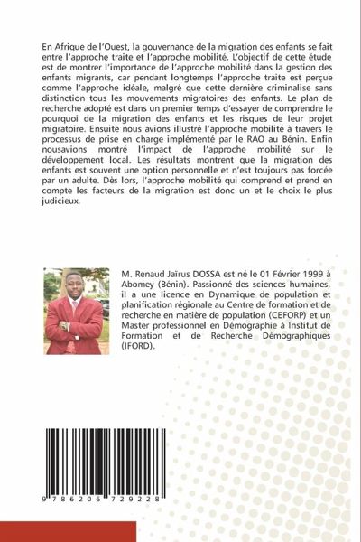 En Afrique de l'Ouest, la gouvernance de la migration des enfants se fait entre l'approche traite et l'approche mobilité. L'objectif de cette étude est de montrer l'importance de l'approche mobilité dans la gestion des enfants migrants, car pendant longtemps l'approche traite est perçue comme l'approche idéale, malgré que cette dernière criminalise sans distinction tous les mouvements migratoires des enfants. Le plan de recherche adopté est dans un premier temps d'essayer de comprendre le pourquoi de la migration des enfants et les risques de leur projet migratoire. Ensuite nous avions illustré l'approche mobilité à travers le processus de prise en charge implémenté par le RAO au Bénin. Enfin nousavions montré l'impact de l'approche mobilité sur le développement local. Les résultats montrent que la migration des enfants est souvent une option personnelle et n'est toujours pas forcée par un adulte. Dès lors, l'approche mobilité qui comprend et prend en compte les facteurs de la migration est donc un et le choix le plus judicieux.