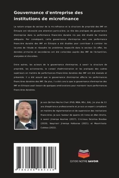 La nature unique du secteur de la microfinance et la structure de propriété des IMF en Éthiopie ont nécessité une attention particulière. Le rôle des pratiques de gouvernance d'entreprise dans la performance financière durable n'a pas été étudié de manière adéquate. Par conséquent, cette gouvernance d'entreprise vers une performance financière durable des IMF en Éthiopie a été étudiée pour contribuer à combler les lacunes de l'étude et résoudre les problèmes respectifs dans le secteur. En effet, les données primaires et secondaires ont été collectées auprès des IMF de l'échantillon, analysées et discutées. Entre autres, les acteurs de la gouvernance d'entreprise, à savoir la structure de propriété, les actionnaires, le conseil d'administration et les pratiques des cadres supérieurs en matière de performances financières durables des IMF ont été évalués et présentés. Il a été assuré que la gouvernance d'entreprise affecte les performances financières durables des IMF. De plus, il a été conclu que la gouvernance d'entreprise des IMF en Ethiopie avait besoin de quelques améliorations pour maintenir leurs performances financières durables.
