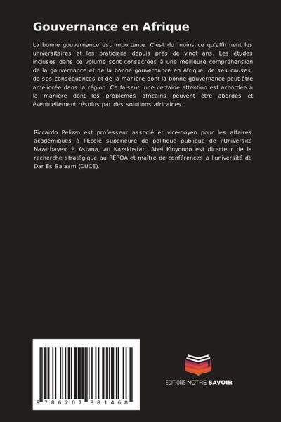 La bonne gouvernance est importante. C'est du moins ce qu'affirment les universitaires et les praticiens depuis près de vingt ans. Les études incluses dans ce volume sont consacrées à une meilleure compréhension de la gouvernance et de la bonne gouvernance en Afrique, de ses causes, de ses conséquences et de la manière dont la bonne gouvernance peut être améliorée dans la région. Ce faisant, une certaine attention est accordée à la manière dont les problèmes africains peuvent être abordés et éventuellement résolus par des solutions africaines.