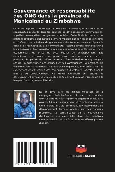 Ce travail apporte un éclairage de pointe sur la dynamique, les défis et les opportunités présents dans les agences de développement, communément appelées organisations non gouvernementales. Cette étude fondée sur des données probantes est particulièrement motivée par la nécessité d'inspirer et d'infuser des principes de gouvernance d'entreprise testés et éprouvés dans ces organisations. Les communautés luttent souvent pour subvenir à leurs besoins et leur exposition aux aléas des adversités politiques et socio-économiques les place du côté négatif du développement. Les connaissances en matière de gouvernance, soutenues par de bonnes pratiques de gestion financière, pourraient être le chaînon manquant pour assurer la subsistance des groupes et des communautés vulnérables. Ce document fournit justement la prescription opportune, enracinée dans les expériences et les réalités des communautés directement affectées par la matrice de développement. Ce travail corrobore des efforts de développement similaires et constitue certainement un ajout intéressant à la banque d'investissement littéraire.