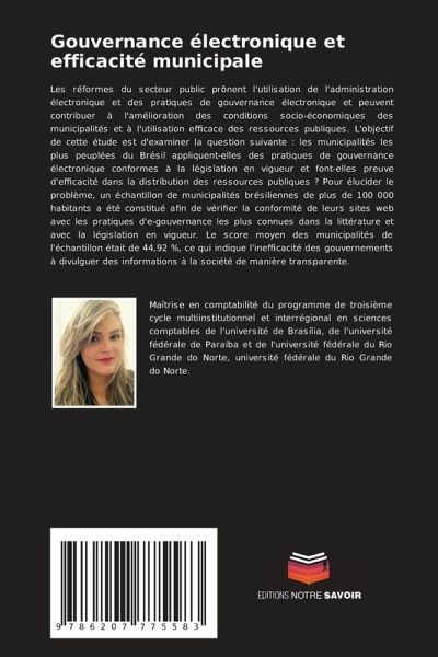 Les réformes du secteur public prônent l'utilisation de l'administration électronique et des pratiques de gouvernance électronique et peuvent contribuer à l'amélioration des conditions socio-économiques des municipalités et à l'utilisation efficace des ressources publiques. L'objectif de cette étude est d'examiner la question suivante : les municipalités les plus peuplées du Brésil appliquent-elles des pratiques de gouvernance électronique conformes à la législation en vigueur et font-elles preuve d'efficacité dans la distribution des ressources publiques ? Pour élucider le problème, un échantillon de municipalités brésiliennes de plus de 100 000 habitants a été constitué afin de vérifier la conformité de leurs sites web avec les pratiques d'e-gouvernance les plus connues dans la littérature et avec la législation en vigueur. Le score moyen des municipalités de l'échantillon était de 44,92 %, ce qui indique l'inefficacité des gouvernements à divulguer des informations à la société de manière transparente.