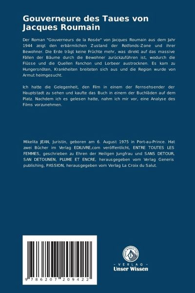 Der Roman "Gouverneurs de la Rosée" von Jacques Roumain aus dem Jahr 1944 zeigt den erbärmlichen Zustand der Rotfonds-Zone und ihrer Bewohner. Die Erde trägt keine Früchte mehr, was direkt auf das massive Fällen der Bäume durch die Bewohner zurückzuführen ist, wodurch die Flüsse und die Quellen Fanchon und Lorbeer austrocknen. Es kam zu Hungersnöten, Krankheiten breiteten sich aus und die Region wurde von Armut heimgesucht.Ich hatte die Gelegenheit, den Film in einem der Fernsehsender der Hauptstadt zu sehen und kaufte das Buch in einem der Buchläden auf dem Platz. Nachdem ich es gelesen hatte, nahm ich mir vor, eine Analyse des Films vorzunehmen.