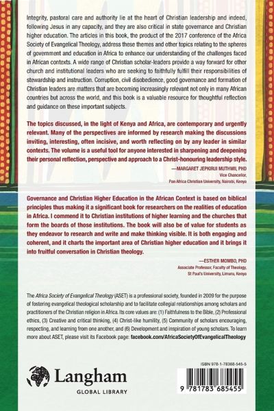 Integrity, pastoral care and authority lie at the heart of Christian leadership and indeed, following Jesus in any capacity, and they are also critical in state governance and Christian higher education. The articles in this book, the product of the 2017 conference of the Africa Society of Evangelical Theology, address these themes and other topics relating to the spheres of government and education in Africa to enhance our understanding of the challenges faced in African contexts. A wide range of Christian scholar-leaders provide a way forward for other church and institutional leaders who are seeking to faithfully fulfill their responsibilities of stewardship and instruction. Corruption, civil disobedience, good governance and formation of Christian leaders are matters that are becoming increasingly relevant not only in many African countries but across the world, and this book is a valuable resource for thoughtful reflection and guidance on these important subjects.