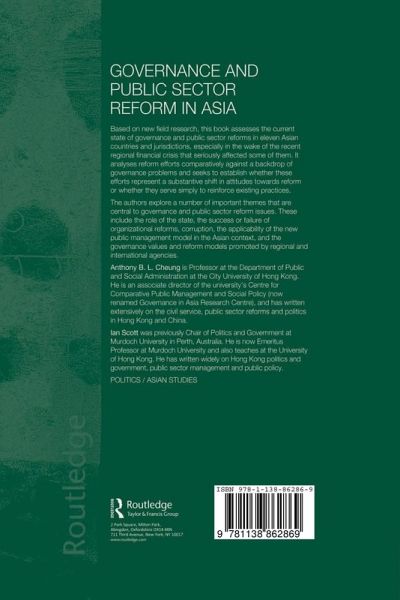 PrefaceChapter 1. Governance and Public Sector Reforms in Asia: Paradigms, Paradoxes and Dilemmas Anthony B.L. Cheung and Ian Scott Chapter 2. Japan's Reluctant Reformers and the Legacy of the Developmental State Mark Beeson Chapter 3. State Capacity and Public Sector Reforms in Post-Crisis Korea Joan Y.H. Leung Chapter 4. Governance and Public Sector Reform in the People's Republic of China John P. Burns Chapter 5. Government Reinvention in Taiwan: Administrative Modernisation and Regime Transition Anthony B.L. Cheung Chapter 6. A De-Capacitated State? Systemic Constraints on Governance in Hong Kong Grace O.M. Lee Chapter 7. Public Service Reform in Singapore: Reinventing Government in a Global Age Anthony B.L. Cheung Chapter 8. Malaysia: A Case of 'Business as Usual?' Richard Common Chapter 9. Thailand: Building the Foundations for Structural and Systemic Transformation Brian Brewer Chapter 10. Public Administration Reform in Vietnam Martin Painter Chapter 11. What Paradigm Shift? Public Sector Reform in Indonesia Since the Asian Crisis Andrew Rosser Chapter 12. The Philippines: Paradigm Lost or Paradigm Retained? Mark Richard Hayllar Chapter 13. International Agencies and Public Sector Reform in Post-Crisis Asia Ian Scott List of Contributors AppenidicesBibliographyIndex