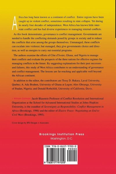 " Africa is known as a continent of conflict. Entire regions have been caught up in violent conflicts that have sometimes resulted in state collapse. Yet during its nearly four decades of independence, West Africa has known comparatively little violent conflict and has had diverse experiences in managing the conflicts of demand-bearing groups. As this book demonstrates, governance is conflict management. Governments are needed to handle the conflicting demands posed by groups in society and to reduce the conflicts that arise among the groups themselves. Unmanaged, these conflicts can escalate into violence; but managed, they give governments choice and direction, as well as energies to carry out essential programs. The authors examine the efforts of Cote d'Ivoire, Ghana, and Nigeria to manage their conflicts and evaluate the prospects of the three nations for effective regimes for managing conflicts in the future. By suggesting explanations for their past successes and failures, this study of West Africa contributes to an understanding of governance and conflict management. The lessons are far-reaching and applicable well beyond the African continent. In addition to the editor, the contributors are Tessy D. Bakary, Laval University, Quebec; A. Adu Boahen, University of Ghana at Legon; Alex Gboyega, University of Ibadan, Nigeria; and Donald Rothchild, professor of political science at the University of California, Davis."