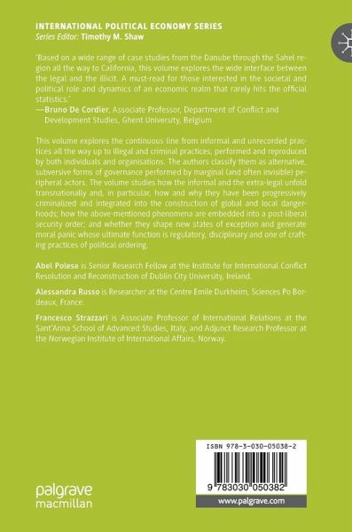 This volume explores the continuous line from informal and unrecorded practices all the way up to illegal and criminal practices, performed and reproduced by both individuals and organisations. The authors classify them as alternative, subversive forms of governance performed by marginal (and often invisible) peripheral actors. The volume studies how the informal and the extra-legal unfold transnationally and, in particular, how and why they have been/are being progressively criminalized and integrated into the construction of global and local dangerhoods; how the above-mentioned phenomena are embedded into a post-liberal security order; and whether they shape new states of exception and generate moral panic whose ultimate function is regulatory, disciplinary and one of crafting practices of political ordering.