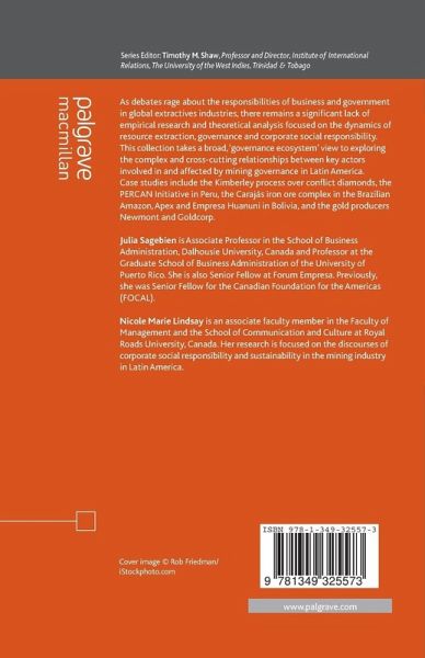 Introduction: Companies and the Company they Keep: CSR in a 'Social and Environmental Value Governance Ecosystems' Context; J.Sagebien & N.M.Lindsay Systemic Causes, Systemic Solutions; J.Sagebien & N.M.Lindsay Sustainable Development Norms and CSR in the Global Mining Sector; H.S.Dashwood CSR and the Law: Learning from the Experience of Canadian Mining Companies in Latin America; K.Webb The Role of Governments in CSR Chapter 1: CSR in a 'Social and Environmental Value Governance Ecosystems' Context; J.Boon Regulatory Frameworks, Issues of Legitimacy, Responsibility and Accountability: Reflections Drawn from the PERCAN Initiative; B.Campbell, E.R.Grégoire & M.Laforce Conflict Diamonds: The Kimberley Process and the South American Challenge; I. Smillie Whose Development? Mining, Local Resistance and Development Agendas; C.Coumans Mining Industry Associations and CSR Discourse: Mapping the Terrain of Sustainable Development Strategies; N.M.Lindsay Drivers of Conflict around Large Scale Mining Activity in Latin America: The Case of the Carajás Iron Ore Complex in the Brazilian Amazon; A.C.Alvares da Silva, S.Costa & M.M.Veiga Community and Government Effects on Mining CSR in Bolivia: The Case of Apex and Empresa Huanuni; R.Cameron Corporate Social Responsibility in the Extractive Industries: The Role of Finance; A.Goss Responsible Investment Case Studies: Newmont and Goldcorp; I.Sosa Anticorruption: A Realistic Strategy in Latin American Mining?; C.Odell Sustainable Juruti Model: Pluralist Governance, Mining and Local Development in the Amazon Region; F.Abdala Energy & CSR in Trinidad & Tobago in the Second Decade of 21st Century; T.M.Shaw Mining Companies and Governance in Africa; R.Hamann, P.Kapelus & E.O'Keefe Conclusion; N.M.Lindsay & J.Sagebien Appendix