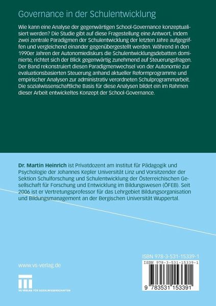 Wie kann eine Analyse der gegenwärtigen School-Governance konzeptualisiert werden? Die Studie gibt zu dieser Fragestellung eine Antwort, indem zwei zentrale Paradigmender Schulentwicklung der letzten Jahre aufgegriffen und vergleichend einander gegenübergestellt werden. Während in den 1990er Jahren der Autonomiediskurs die Schulentwicklungsdebatten dominierte, richtet sich der Blick gegenwärtig zunehmend auf Steuerungsfragen. Der Band rekonstruiert diesen Paradigmenwechsel von der Autonomie zur evaluationsbasierten Steuerung anhand aktueller Reformprogramme und empirischer Analysen zur administrativ verordneten Schulprogrammarbeit. Die sozialwissenschaftliche Basis für diese Analysen bildet ein im Rahmen dieser Arbeit entwickeltes Konzept der School-Governance.