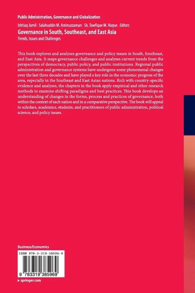 This book explores and analyzes governance and policy issues in South, Southeast, and East Asia. It maps governance challenges and analyzes current trends from the perspectives of democracy, public policy, and public institutions. Regional public administration and governance systems have undergone some phenomenal changes over the last three decades and have played a key role in the economic progress of the area, especially in the Southeast and East Asian nations. Rich with country-specific evidence and analyses, the chapters in the book apply empirical and other research methods to examine shifting paradigms and best practices. This book develops an understanding of changes in the forms, process and practices of governance, both within the context of each nation and in a comparative perspective. The book will appeal to scholars, academics, students, and practitioners of public administration, political science, and policy issues.