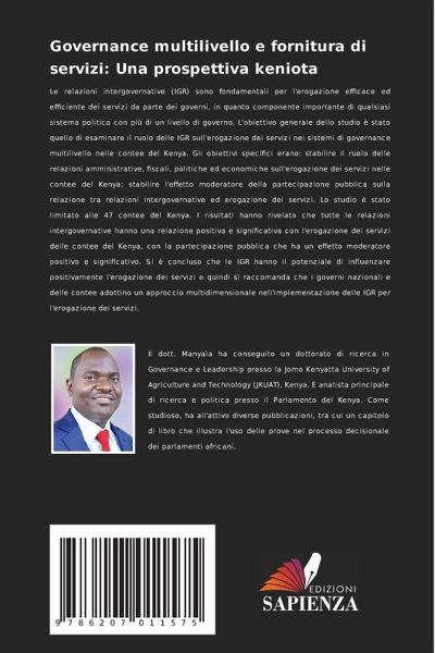Le relazioni intergovernative (IGR) sono fondamentali per l'erogazione efficace ed efficiente dei servizi da parte dei governi, in quanto componente importante di qualsiasi sistema politico con più di un livello di governo. L'obiettivo generale dello studio è stato quello di esaminare il ruolo delle IGR sull'erogazione dei servizi nei sistemi di governance multilivello nelle contee del Kenya. Gli obiettivi specifici erano: stabilire il ruolo delle relazioni amministrative, fiscali, politiche ed economiche sull'erogazione dei servizi nelle contee del Kenya; stabilire l'effetto moderatore della partecipazione pubblica sulla relazione tra relazioni intergovernative ed erogazione dei servizi. Lo studio è stato limitato alle 47 contee del Kenya. I risultati hanno rivelato che tutte le relazioni intergovernative hanno una relazione positiva e significativa con l'erogazione dei servizi delle contee del Kenya, con la partecipazione pubblica che ha un effetto moderatore positivo e significativo. Si è concluso che le IGR hanno il potenziale di influenzare positivamente l'erogazione dei servizi e quindi si raccomanda che i governi nazionali e delle contee adottino un approccio multidimensionale nell'implementazione delle IGR per l'erogazione dei servizi.