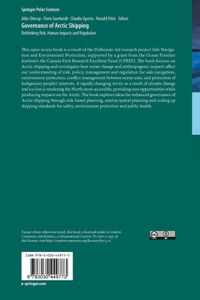 This open access book is a result of the Dalhousie-led research project Safe Navigation and Environment Protection, supported by a grant from the Ocean Frontier Institute's the Canada First Research Excellent Fund (CFREF). The book focuses on Arctic shipping and investigates how ocean change and anthropogenic impacts affect our understanding of risk, policy, management and regulation for safe navigation, environment protection, conflict management between ocean uses, and protection of Indigenous peoples' interests. A rapidly changing Arctic as a result of climate change and ice loss is rendering the North more accessible, providing new opportunities while producing impacts on the Arctic. The book explores ideas for enhanced governance of Arctic shipping through risk-based planning, marine spatial planning and scaling up shipping standards for safety, environment protection and public health.