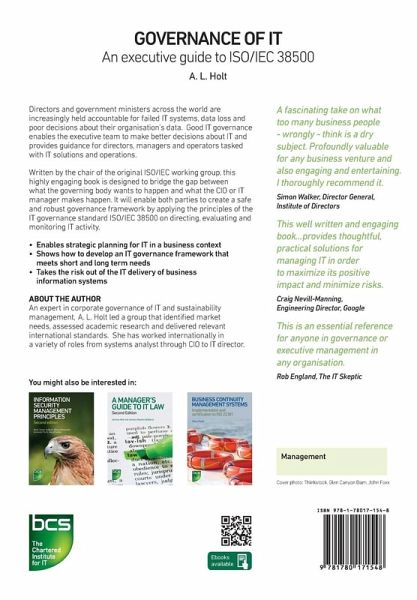 Directors and government ministers across the world are increasingly being held accountable for failed or sub-standard IT systems. This valuable book helps IT teams and senior executives to create a safe and robust governance framework for their organisation by applying the principles of the ISO Governance of IT Standard 38500 on IT activity.