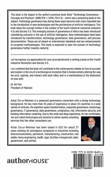 This book is the sequel to the author's previous book titled "Technology Governance - Concepts and Practices" (ISBN 978-1-5246-7815-9) - which was a pioneering book on the subject. Technology governance has during these years become even more important due to the introduction of new technologies and the proliferation of artificial intelligence. This book takes the concept further in the context of the fourth industrial revolution (Industrie 4.0) and Society 5.0. The emerging domain of governance of ethics has been introduced considering concerns in the use of artificial intelligence. New methodologies have been introduced for transformation, technology governance, data governance, and process documentation. These are all based on international standards and are enhancements to accepted methodologies. This book is expected to take the domain of technology governance further towards maturity. Let me express my appreciation for your accomplishment in writing a book on the Fourth Industrial Revolution and Society 5.0 I am confident that the book will contribute to the contemporary debate on how to succeed and sustain in the era of a technological revolution that is fundamentally altering the way we exist, operate, and interact with each other, and is a manifestation of the dedication on your part. Dr. Arif Alvi President of Pakistan