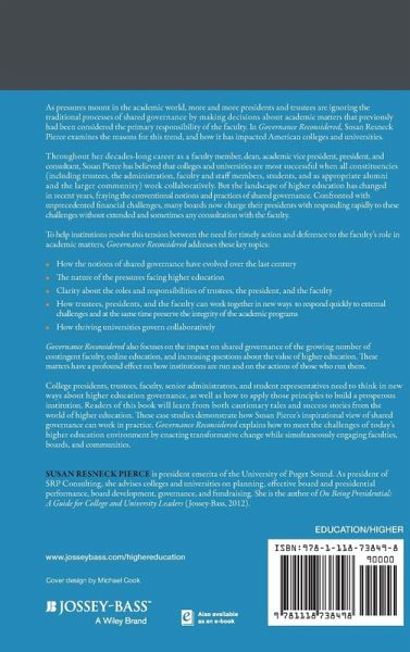 Governance Reconsidered: How Boards, Presidents, Administrators, and Faculty Can Help Their Colleges Thrive takes an in-depth look at the current practice of governance in higher education and explores solutions for more effective functioning. Written by a former college president, the book provides an insider's perspective on the growing tensions around the traditional shared governance model and identifies the key challenges facing trustees, presidents, senior administrators, and faculty.