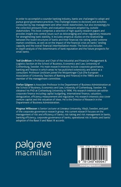 This book provides novel insight into the governance of banks and looks at regulatory measures for strengthening bank stability. It includes empirical studies on the relationship between the board structures of banks and their financial risk-taking and analyses the determinants of bank reputation and the future prospects of small banks.