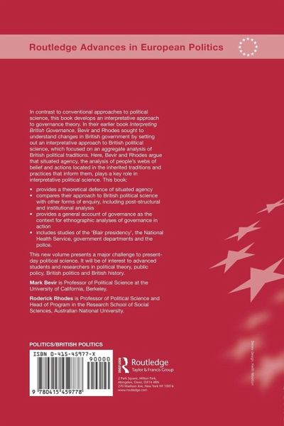 An incisive examination of Britain today, which breaks from traditional studies, and takes a new approach to account for massive changes in the make-up of the nation. Over the last twenty years Britain has changed from being governed as a unitary state to a country ruled by the interplay of various forces: central government, the market, public-private partnerships, new local government structures (eg. the new Mayoral system), greater regional autonomy as well as the EU and transnational businesses and organizations. In their earlier book Interpreting British Governance, Bevir and Rhodes examined changes in British government by setting out an interpretative approach to British political science, which focussed on an aggregate analysis of British political traditions. This new study builds on this work to: provide a theoretical defence of situated agency located in the historical context of British political science compare their approach to British political science with others including, post-structural and institutional analysis present a general account of governance as the context for ethnographic analyses of governance in action deliver studies of the consumers of public services, the National Health Service, government departments and policy networks. This book will be of great interest to advanced students and researchers of political theory, public policy, British politics and British history.