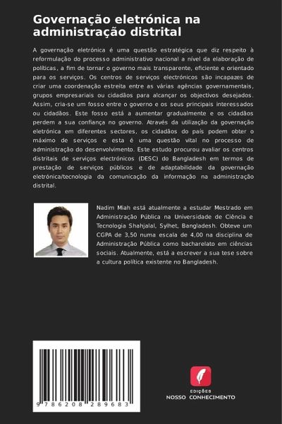 A governação eletrónica é uma questão estratégica que diz respeito à reformulação do processo administrativo nacional a nível da elaboração de políticas, a fim de tornar o governo mais transparente, eficiente e orientado para os serviços. Os centros de serviços electrónicos são incapazes de criar uma coordenação estreita entre as várias agências governamentais, grupos empresariais ou cidadãos para alcançar os objectivos desejados. Assim, cria-se um fosso entre o governo e os seus principais interessados ou cidadãos. Este fosso está a aumentar gradualmente e os cidadãos perdem a sua confiança no governo. Através da utilização da governação eletrónica em diferentes sectores, os cidadãos do país podem obter o máximo de serviços e esta é uma questão vital no processo de administração do desenvolvimento. Este estudo procurou avaliar os centros distritais de serviços electrónicos (DESC) do Bangladesh em termos de prestação de serviços públicos e de adaptabilidade da governação eletrónica/tecnologia da comunicação da informação na administração distrital.