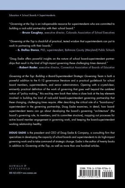 Doug Eadie's Governing at the Top: Building a Board-Superintendent Strategic Governing Team is both a powerful addition to the K-12 governance literature and a practical guidebook for school board members, superintendents, and senior administrators.