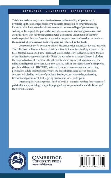 This interdisciplinary collection addresses Foucault's concept of governmentality through a range of topics.