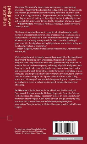 'This book is important because it recognizes that technologies really matter in understanding governmental processes. Paul Henman demonstrates impressive expertise in both information technology and public administration in a major study which furthers our understanding of government in the digital era and highlights important shifts in policy and the changing nature of citizenship.' - Helen Margetts, Professor of Society and the Internet, Oxford Internet Institute, UK