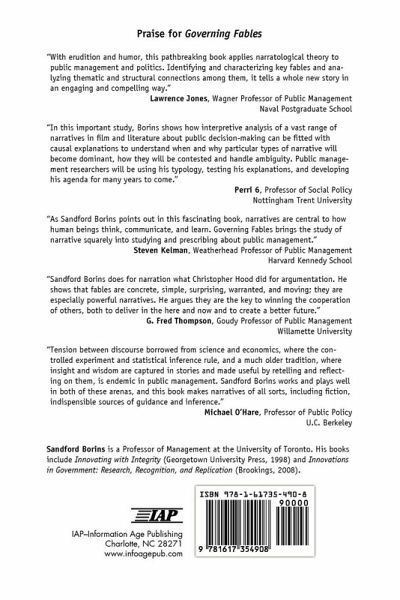 A volume in Research in Public Management Series Editor: Lawrence R. Jones, Naval Postgraduate School Governing Fables: Learning from Public Sector Narratives advocates the importance of narrative for public servants, exemplifies it with a rigorously selected and analyzed set of narratives, and imparts narrative skills politicians and public servants need in their careers. Governing Fables turns to narratology, the interdisciplinary study of narrative, for a conceptual framework that is applied to a set of narratives engaging life within public organizations, focusing on works produced during the last twenty-five years in the US and UK. The genres discussed include British government narratives inspired by and reacting to Yes Minister, British appeasement narratives, American political narratives, the Cuban Missile Crisis narrative, jury decision-making narratives, and heroic teacher narratives. In each genre lessons are presented regarding both effective management and essential narrative skills. Governing Fables is intended for public management and political science scholars and practitioners interested in leadership and management, as well as readers drawn to the political subject matter and to the genre of political films, novels, and television series.