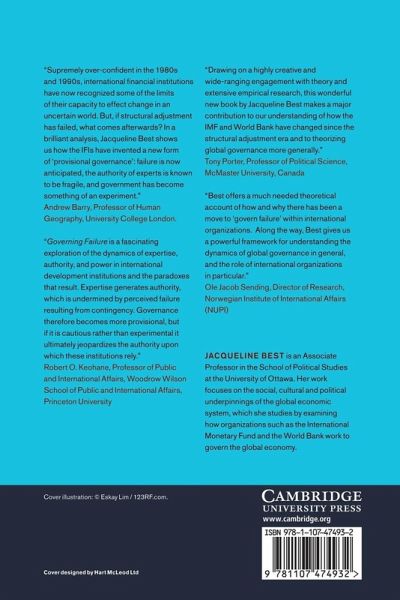 Jacqueline Best argues that the 1990s changes in IMF, World Bank and donor policies, towards what some have called the 'Post-Washington Consensus,' were driven by an erosion of expert authority and an increasing preoccupation with policy failure. Failures such as the Asian financial crisis and the decades of despair in sub-Saharan Africa led these institutions to develop governance strategies designed to avoid failure: fostering country ownership, developing global standards, managing risk and vulnerability and measuring results. In contrast to the structural adjustment era when policymakers were confident in their solutions, this is an era of provisional governance, in which key actors are aware of the possibility of failure even as they seek to inoculate themselves against it. Best considers the implications of this shift, asking if it is a positive change and whether it is sustainable. This title is available as Open Access on Cambridge Books Online and via Knowledge Unlatched.