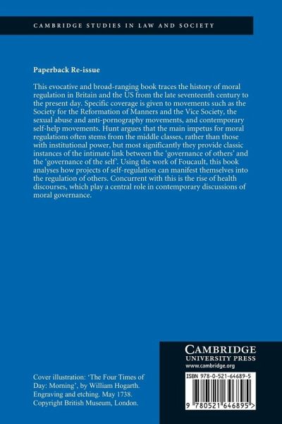 This evocative and broad-ranging book traces the history of moral regulation in Britain and the US from the late seventeenth century to the present day. Specific coverage is given to movements such as the Society for the Reformation of Manners and the Vice Society, the sexual abuse and anti-pornography movements, and contemporary self-help movements. Hunt argues that the main impetus for moral regulations often stems from the middle classes, rather than those with institutional power, but most significantly they provide classic instances of the intimate link between the 'governance of others' and the 'governance of the self'. Using the work of Foucault, this book analyses how projects of self-regulation can manifest themselves into the regulation of others. Concurrent with this is the rise of health discourses, which play a central role in contemporary discussions of moral governance.