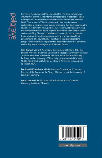 Governing New European Democracies is a fully comparative study of decision-making processes in the cabinets of ten post-communist countries of East-Central and South-Eastern Europe. It is based on interviews collected from over 300 ministers. This book provides the first comprehensive panorama of life in cabinet governments.