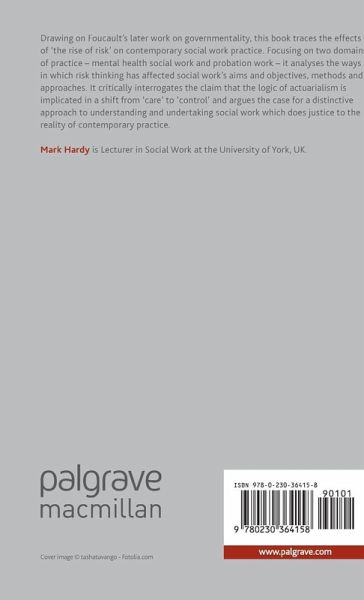 Drawing on Foucault's later work on governmentality, this book traces the effects of 'the rise of risk' on contemporary social work practice. Focusing on two 'domains' of practice - mental health social work and probation work - it analyses the ways in which risk thinking has affected social work's aims and objectives, methods and approaches.
