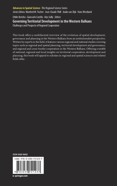 This book offers a multifaceted overview of the evolution of spatial development, governance and planning in the Western Balkans from an institutionalist perspective. Written by experts in the field, it features various regional and national studies covering topics such as regional and spatial planning, territorial development and governance, and regional and cross-border cooperation in the Western Balkans. Offering a wealth of national, regional and local insights on territorial cooperation, development and planning, this book will appeal to scholars in regional and spatial sciences and related fields alike.