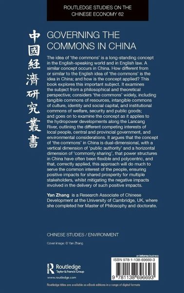 The idea of 'the commons' is a long-standing concept in the English-speaking world and in English law. A similar concept occurs in China. How different from or similar to the English idea of 'the commons' is the idea in China; and how is the concept applied? This book explores this important subject. It examines the subject from a philosophical and theoretical perspective; considers 'the commons' widely, including tangible commons of resources, intangible commons of culture, identity and social capital, and institutional commons of welfare, security and public goods; and goes on to examine the concept as it applies to the hydropower developments along the Lancang River, outlining the different competing interests of local people, central and provincial government, and environmental considerations. It argues that the concept of 'the commons' in China is dual-dimensional, with a vertical dimension of 'public authority' and a horizontal dimension of 'commonly sharing', that power structures in China have often been flexible and polycentric, and that, correctly applied, this approach will do much to serve the common interest of the people, ensuring positive impacts for shared prosperity for multiple stakeholders, whilst mitigating the negative impacts involved in the delivery of such positive impacts.