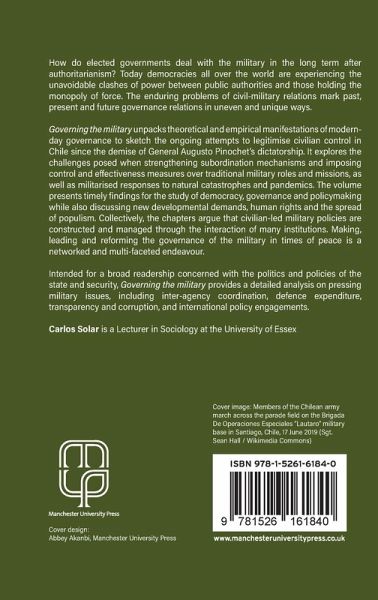 Governing the military is an up-to-date study of key contemporary challenges to govern the military and the ongoing successes and failures by post-dictatorship civilians in Chile to reform national defence governance. -- .