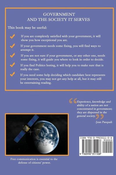 The book was inspired by observing the suffering caused to society by a national government with serious difficulties. An analysis of the causes behind those difficulties revealed that they are frequently the same as those of other governments, in different degrees, but in similar areas. The critical areas turned out to be: The family, education, productivity and innovation, designation of high government officials, political parties, the military, the Constitution and the citizens. The salient characteristics of each critical area are used to outline a power structure and procedures for a virtual government. The result makes it easy for the reader to analyze his or her current government, whichever it may be, compare it with those of other nations and consider the adoption of structures and procedures to fix what seems to need repair. Citizens are prompted to take an active part in government and powerful means to deal with most governmental problems are suggested and described.