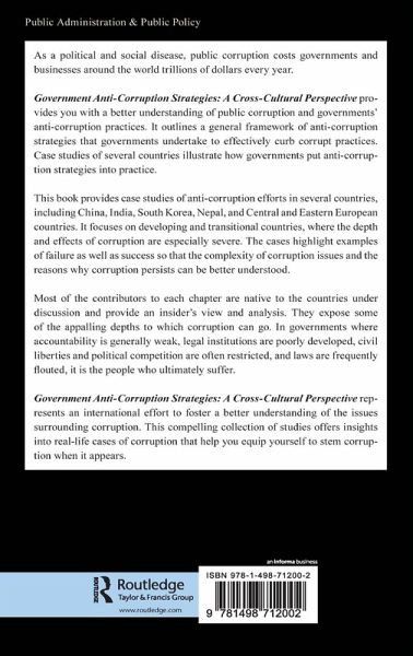 This book is designed to help students, researchers, and practitioners understand public corruption and anti-corruption practices from an international perspective. It describes the problems governments face in dealing with public corruption, outlines strategies that have and have not been implemented by the government, and explains why some countries have achieved great success with handling corruption and why others still struggle to do so. It contains useful knowledge about public corruption and strategic approaches to preventing, reducing, and combating corruption.