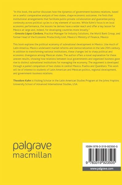 This book explores the political economy of subnational development in Mexico. Like much of Latin America, Mexico underwent market reforms and democratization in the late 20th century. In addition to transforming national institutions, these changes led to sharp political and economic divergence among Mexican states. The author offers a novel explanation for these uneven results, showing how relations between local governments and organized business gave rise to distinct subnational institutions for managing the economy. The argument is developed through a paired comparison of two states in central Mexico, Puebla and Querétaro. This work will be of interest to students of Latin American and Mexican politics, regional development, and government-business relations.