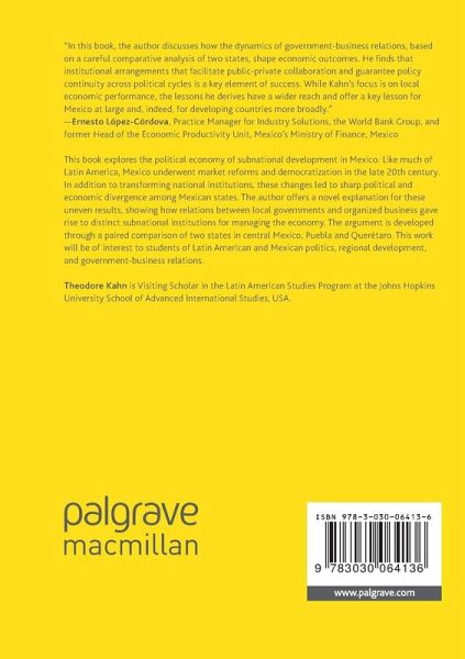 This book explores the political economy of subnational development in Mexico. Like much of Latin America, Mexico underwent market reforms and democratization in the late 20th century. In addition to transforming national institutions, these changes led to sharp political and economic divergence among Mexican states. The author offers a novel explanation for these uneven results, showing how relations between local governments and organized business gave rise to distinct subnational institutions for managing the economy. The argument is developed through a paired comparison of two states in central Mexico, Puebla and Querétaro. This work will be of interest to students of Latin American and Mexican politics, regional development, and government-business relations.