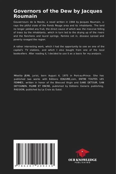 Gouverneurs de la Rosée, a novel written in 1944 by Jacques Roumain, x-rays the pitiful state of the Fonds Rouge area and its inhabitants. The land no longer yielded any fruit, the direct cause of which was the massive felling of trees by the inhabitants, which in turn led to the drying up of the rivers and the Fanchons and laurel springs. Famine set in, disease spread and poverty ravaged the region.A rather interesting work, which I had the opportunity to see on one of the capital's TV stations, and which I also bought from one of the local booksellers. After reading it, I decided to use it as a basis for my analysis.