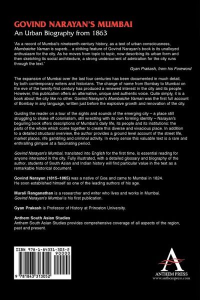 Govind Narayan (1815-1865) was one of the leading authors of his age, producing a series of original books that were principally designed to strengthen the moral fibre. Murali Ranganathan lives and works in Mumbai. After having worked in various jobs, Murali turned to research. 'Govind Narayan's Mumbai' is his first publication. Gyan Prakash is Professor of History at Princeton University.