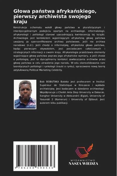 Konstrukcja schematu wokó¿ g¿owy pästwa w pluralistycznym i interdyscyplinarnym podej¿ciu opartym na archiwologii, informatologii, afrykanologii i politologii stanowi uzasadniaj¿c¿ kwintesencj¿ tej ksi¿¿ki. Archiwologia jest kontekstem wyjäniaj¿cym afrykäsk¿ g¿ow¿ pästwa uwäan¿ za spersonifikowane archiwa pästwowe, je¿li nie archiwa narodowe (n.d.). Je¿li chodzi o informatyk¿, afrykäska g¿owa pästwa, b¿d¿c pierwszym obywatelem, jest posiadaczem cäo¿ciowych i strategicznych informacji o swoim kraju. Afrykanologia przedstawia elementy wyjäniaj¿ce g¿ow¿ pästwa poprzez jego afrykäskie wymiary, a je¿li chodzi o politologi¿, jest to dyscyplinarny kontekst zaw¿aszczania archiwów przez g¿ow¿ pästwa w celu utrwalenia jego narodu. W celu skonsolidowania ram teoretycznych politologii i rynkologii (nauki o rynku), opracowano now¿ teori¿ zatytu¿owan¿ Political Marketing Celebrity.