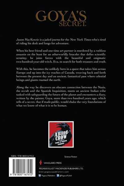 Jason MacKenzie is a jaded journo for the New York Times who's tired of riding his desk and longs for adventure. When his best friend and one-time art partner is murdered by a ruthless assassin on the hunt for an otherworldly bracelet that defies scientific scrutiny, he joins forces with the beautiful and enigmatic two-hundred-year-old witch, Eva, to search for both treasure and truth. With this, he becomes the unlikely hero in a quest that takes him across Europe and up into the icy reaches of Canada, weaving back and forth between the present day and an ancient, fantastical past where celestial beings and giants roamed the earth. Along the way he discovers an obscure connection between the Nazis, the occult and the Spanish Inquisition, meets an ancient Indian tribe tasked with safeguarding the future of the planet and encounters a diary, written by the painter, Goya, more than two hundred years ago, which tells of a secret, that if made public, would shake the very foundations of what we know of what it is to be human.