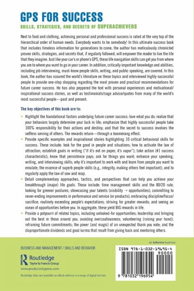 Next to food and clothing, achieving personal and professional success is rated at the very top of the hierarchical order of human needs. Everybody wants to be somebody! In this ultimate success book that includes timeless information for generations to come, the author has meticulously chronicled proven skills, strategies and secrets that, if regularly followed, will empower the reader to live the life that they imagine. Just like your car's or phone's GPS, these life navigation skills can get you from where you are to where you want to go in your career. In addition, critically important knowledge and abilities, including job interviewing, must-know people skills, writing, and public speaking, are covered. In this book, the author has scoured the world's literature on these topics and interviewed highly successful people to provide one-stop shopping regarding the most proven and practical recommendations for future career success. He has also peppered the text with personalexperiences and motivational/inspirational success stories, as well as testimonials/sage advice/quotes from the world's most successful people --past and present.
