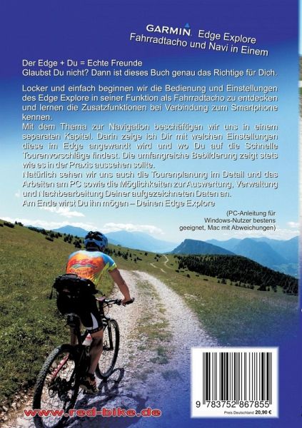 Der Edge + Du = Echte FreundeGlaubst Du nicht? Dann ist dieses Buch genau das Richtige für Dich.Locker und einfach beginnen wir die Bedienung und Einstellungen des Edge Explore in seiner Funktion als Fahrradtacho zu entdecken und lernen die Zusatzfunktionen bei Verbindung zum Smartphone kennen. Mit dem Thema zur Navigation beschäftigen wir uns in einem separaten Kapitel. Darin zeige ich Dir mit welchen Einstellungen diese im Edge angewandt wird und wo Du auf die Schnelle Tourenvorschläge findest. Die umfangreiche Bebilderung zeigt stets wie es in der Praxis aussehen sollte.Natürlich sehen wir uns auch die Tourenplanung im Detail und das Arbeiten am PC sowie die Möglichkeiten zur Auswertung, Verwaltung und Nachbearbeitung Deiner aufgezeichneten Daten an. Am Ende wirst Du ihn mögen - Deinen Edge Explore.(PC-Anleitung für Windows-Nutzer bestens geeignet, Mac mit Abweichungen)"GPS Praxisbuch" von Red Bike - Das Original gerätebezogener GPS-Lektüren - Tipps und Tricks vom Anwender