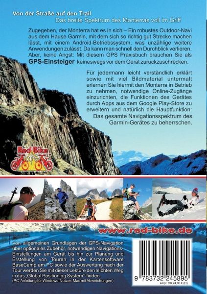 Zugegeben, der Monterra hat es in sich - Ein robustes Outdoor-Navi aus dem Hause Garmin, mit dem sich so richtig gut Strecke machen lässt, mit einem Android-Betriebssystem, was unzählige weitere Anwendungen zulässt. Da kann man schnell den Durchblick verlieren. Aber, keine Angst: Mit diesem GPS Praxisbuch brauchen Sie als GPS-Einsteiger keineswegs vor dem Gerät zurückzuschrecken. Für jedermann leicht verständlich erklärt sowie mit viel Bildmaterial untermalt erlernen Sie hiermit den Monterra in Betrieb zu nehmen, notwendige Online-Zugänge einzurichten, die Funktionen des Gerätes durch Apps aus dem Google Play-Store zu erweitern und natürlich die Hauptfunktion: das gesamte Navigationsspektrum des Garmin-Gerätes zu beherrschen.Von allgemeinen Grundlagen der GPS-Navigation über optionales Zubehör, notwendigen Navigations-Einstellungen am Gerät bis hin zur Planung und Erstellung von Touren in der Kartensoftware BaseCamp am PC sowie der Auswertung nach der Tour werden Sie mit dieser Lektüre den leichten Weg in das "Global Positioning System" finden. (PC-Anleitung für Windows-Nutzer bestens geeignet, Mac mit Abweichungen)Auflage 2 und 3: Geringfügige Layout-Änderung und Korrektur des rechtlichen Inhaltes, keine Änderung des eigentlichen Buchinhaltes."GPS Praxisbuch" von Red Bike - Das Original vom Pionier und Erfinder gerätebezogener GPS-Lektüren - Tipps und Tricks vom Anwender