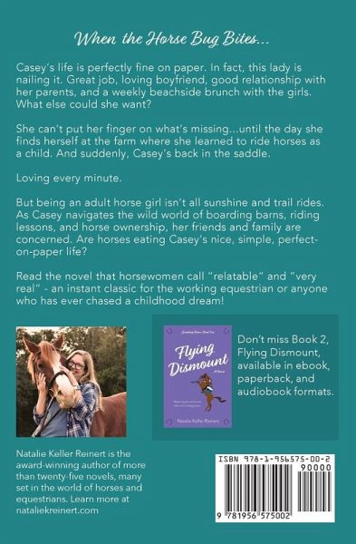 "Buy a horse, they said. It will be fun, they said." Casey Halbach's life was perfectly on track. She had it all: good friends, loving boyfriend, decent job with her very own cubicle. Then, she met Sky. Riding instructor, barn manager, and whirlwind of energy, Sky effortlessly launches Casey back into the saddle. After fifteen years behind a desk, Casey was a little rusty... but the more time she spends at the stable, the more she never wants to leave. Friends are confused, the boyfriend is concerned, and Casey is conflicted -- but when she decides to take the plunge and buy a horse of her own, she realizes that she was just dabbling in the shallow end before. Now, Casey's pretty sure she's in over her head, but the crazy thing is: She thinks she likes it this way. Can anyone balance life, work, and horses? Casey's going to give it a try. Indeed, she's pretty sure she doesn't have a choice. For anyone who has ever loved a horse, dreamed about their very own pony, or simply clock-watched their way through another boring day at the office, Grabbing Mane is our story. Testing the boundaries of who we think we are, adjusting to strange new realities, and (hopefully) bringing our partners along for the ride: balancing real life, and equestrian life, isn't easy. Grabbing Mane is Book One in a new series about adult amateur equestrian life, from award-winning author Natalie Keller Reinert. Early Reviews for Grabbing Mane: "Natalie has done it again and with all new characters! I loved getting to know Casey, Brandon and of course the lovely James! I especially liked the fact that Casey was just like all of us, bitten by the horse bug but having to make her way in the real world, with all the conflicts and confidence issues that haunt horse-girls everyday." - Kathleen Edwards, Goodreads "It is relatable and extremely well-written. Anyone who has been into horses and has walked away for a while will understand." -Jo, Goodreads