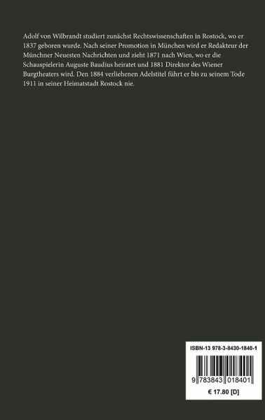 Adolf von Wilbrandt: Gracchus der Volkstribun. Trauerspiel in fünf Aufzügen Die Geschichte des Gaius Sempronius Gracchus, der 123 v. Chr. Volkstribun wurde. Erstdruck: Wien (Rosner), 1872. Vollständige Neuausgabe mit einer Biographie des Autors. Herausgegeben von Karl-Maria Guth. Berlin 2013. Textgrundlage ist die Ausgabe: Adolf Wilbrandt: Gracchus der Volkstribun. Berlin: Eduard Bloch, [1872]. Die Paginierung obiger Ausgabe wird in dieser Neuausgabe als Marginalie zeilengenau mitgeführt. Umschlaggestaltung von Thomas Schultz-Overhage unter Verwendung des Bildes: Joseph-Benoit Suvée, Cornelia die Mutter der Gracchen, 1795. Gesetzt aus Minion Pro, 11 pt. Über den Autor: Adolf von Wilbrandt studiert zunächst Rechtswissenschaften in Rostock, wo er 1837 geboren wurde. Nach seiner Promotion in München wird er Redakteur der "Münchner Neuesten Nachrichten" und zieht 1871 nach Wien, wo er die Schauspielerin Auguste Baudius heiratet und 1881 Direktor des Wiener Burgtheaters wird. Den 1884 verliehenen Adelstitel führt er bis zu seinem Tode 1911 in seiner Heimatstadt Rostock nie.