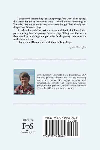 Reading the same passage for a week can often expand our understanding of biblical verses in wondrous ways. This new devotional book offers readers that opportunity over the course of a year, with 52 passages and seven devotionals relating to each passage that are excerpted from the author's sermons. ¿¿¿¿¿¿¿Although readers may follow a calendar year, the book is arranged so that the study of new passages can begin on any day in any month as well.