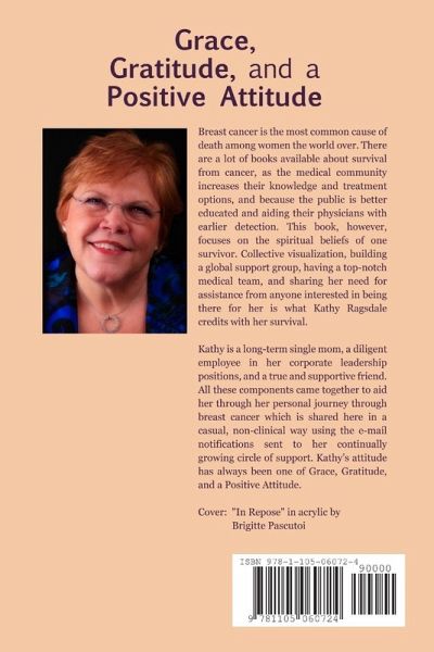 An intimate account of one survivor's journey as she takes each step through detection, treatment, and ultimate survival of breast cancer, a disease that affects one in eight women, and her discovery of so many opportunities for gratitude along the way.