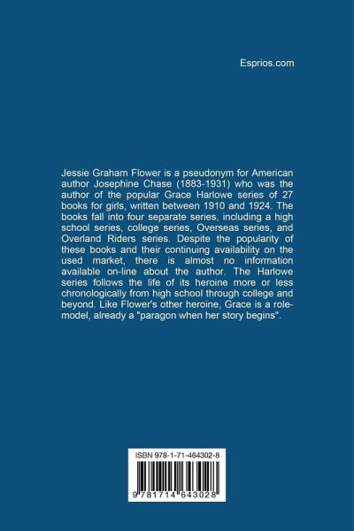 Jessie Graham Flower is a pseudonym for American author Josephine Chase (1883-1931) who was the author of the popular Grace Harlowe series of 27 books for girls, written between 1910 and 1924. The books fall into four separate series, including a high school series, college series, Overseas series, and Overland Riders series. Despite the popularity of these books and their continuing availability on the used market, there is almost no information available on-line about the author. The Harlowe series follows the life of its heroine more or less chronologically from high school through college and beyond. Like Flower's other heroine, Grace is a role-model, already a "paragon when her story begins".
